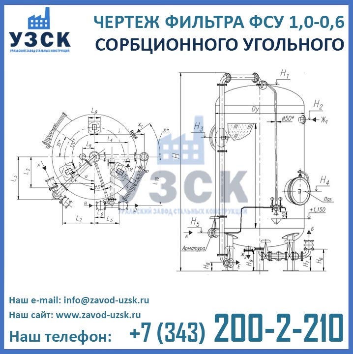 Наш завод (Уральский завод стальных конструкций) является производителем угольных фильтров, сам осуществляет изготовление и реализацию выпускаемой продукции. Приобретая фильтры ФСУ-1.0-0.6 в Барнауле от производителя, Вы приобретаете оборудование без наценок всевозможных посредников, а также значительно экономите свое время. Фильтры ФСУ1.0-0.6 завода УЗСК – это гарантия качества, кратчайшие сроки изготовления и цена, которая Вам понравится.